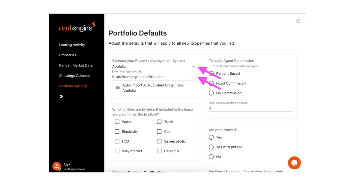 Select AppFolio as your Property Management System. Then paste the link to your AppFolio domain (the same URL that you use to log into AppFolio). Finally hit Save at the bottom of the page.