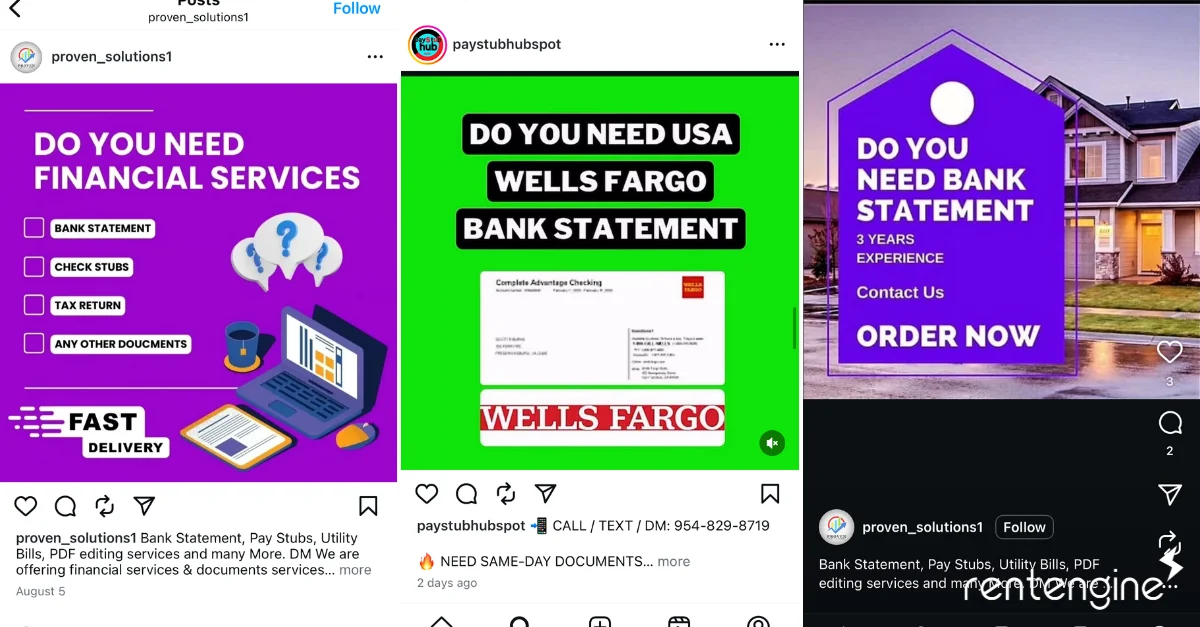 But it turns out that Instagram is host to a massive marketplace of counterfeiters. A quick search for "fake paystubs" returns dozens of accounts that promise fake documents, high approval rates, and fast service.