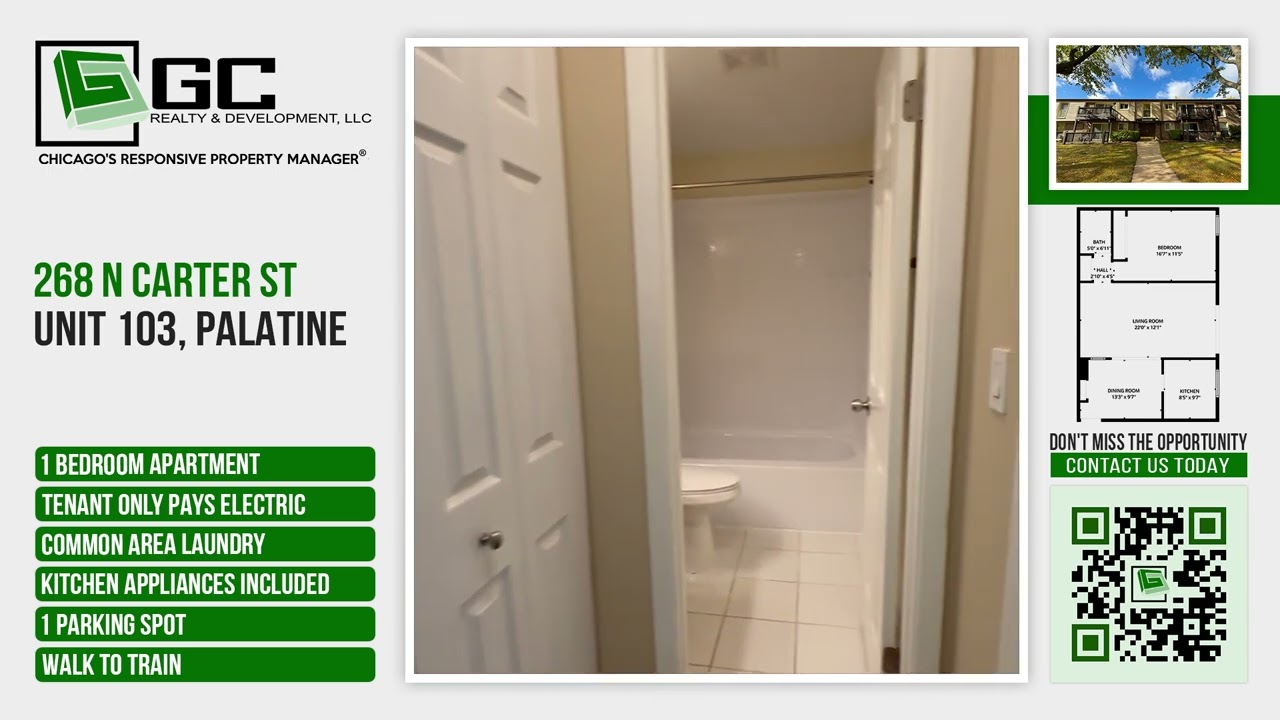 *** WALK TO METRA / HEAT INCL / PAY ONLY ELECTRIC / LAUNDRY NEXT TO UNIT / SMALL PET FRIENDLY *** First floor 1 bedroom / 1 Bath walking distance to downtown Palatine and Metra. Pet friendly up to 25 pounds and pay only electric. Heat included in rent. Stove is new. Eat in kitchen with separate dining area. Room for office area off living room and good storage within the unit. Parking included on site with permit parking. Small patio off living room and both dogs and cats welcome. HOA: $25 move in inspection and $200 move in deposit to be returned if no damage is done in lobby! The non-refundable application fee is $60/adult (18+). Qualified tenants pay the first full month's rent & security deposit equal to (1) month's rent. One-time $200.00 lease admin fee is added to your total move in funds & will not go towards rent/deposits. Less than qualified apps may be approved w/extra requirements. Pet fees will apply if allowed. Internet/cable install paid by the resident. Renters Insurance required to move in. AMENITIES: * Refrigerator * Dishwasher * Microwave * Condo * Cats ok * Stove / oven * Gas included * Tenant pays all electric * Trash removal included * Water included * Dogs ok up to 25 lbs * 1 parking spot * No smoking * Snow removal included * Lawn care included * Paid laundry on site * Walking/biking trails * Walk to train By submitting your information on this page you consent to being contacted by the Property Manager and RentEngine via SMS, phone, or email.
