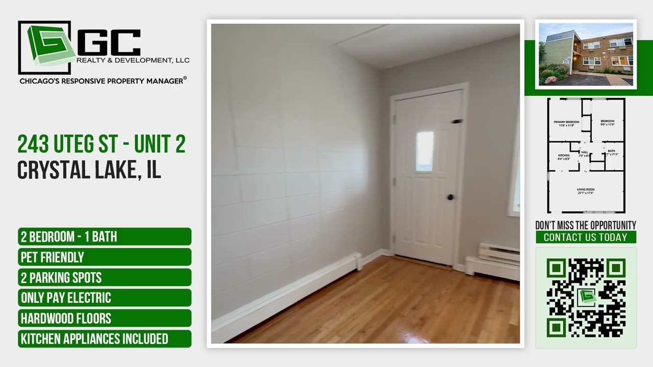 This 2-bedroom, 1-bath unit features hardwood floors, kitchen appliances, two parking spots, and tenant-paid electric only, is pet friendly, and offers quick access to Crystal Lake Plaza, Mariano’s, and Sam’s Club. The non-refundable application fee is $60/adult (18+). Qualified tenants pay the first full month's rent & security deposit equal to (1) month's rent. One-time $200.00 lease admin fee is added to your total move in funds & will not go towards rent/deposits. Less than qualified apps may be approved w/extra requirements. Pet fees will apply if allowed. Internet/cable install paid by the resident. Renters Insurance required to move in. Where applicable, residents are enrolled in the Resident Benefits Package($30/mo). Includes HVAC filter delivery, rent-based credit reporting, ID theft protection up to $1M, a rewards program, and more. AMENITIES: * Refrigerator * Condo * Cats ok * Stove / oven * Tenant pays all electric * 2 parking spots * Trash removal included * Water included * No smoking * Dogs ok * Snow removal included * Lawn care included * Hardwood floors * Walking/biking trails By submitting your information on this page you consent to being contacted by the Property Manager and RentEngine via SMS, phone, or email.
